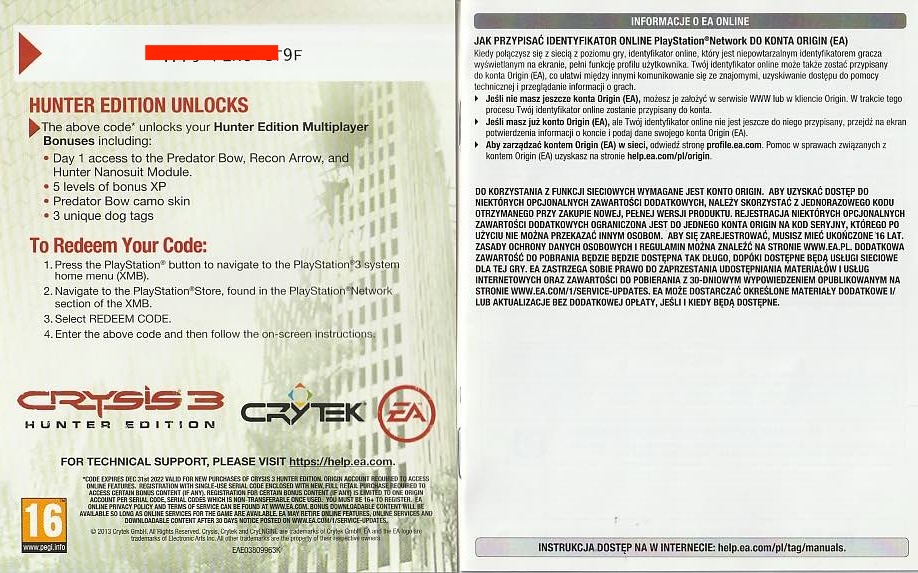 A Playstation 3 Crysis 3 Hunter Edition kiegészítő lap az eredeti játékhoz tartozó hivatalos kiadás.