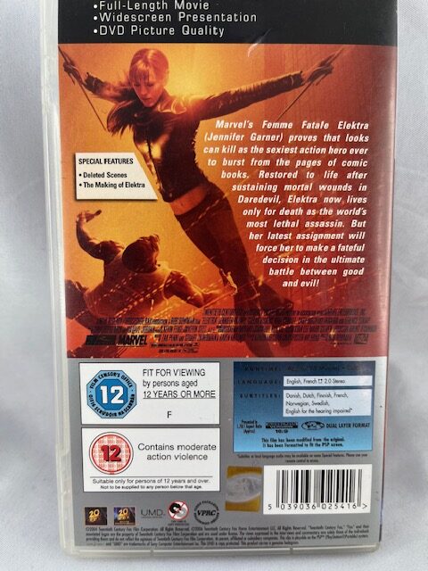 A film látványos harcjelenetekkel, keleties hangulattal és sötétebb tónusú történetvezetéssel ötvözi az akciót és a fantasy elemeket. Jennifer Garner főszereplésével az Elektra egy stílusos, lendületes mozi a képregényfilmek kedvelőinek. Ez a kiadás PSP UMD Video formátumban jelent meg, így közvetlenül PlayStation Portable konzolon lejátszható.