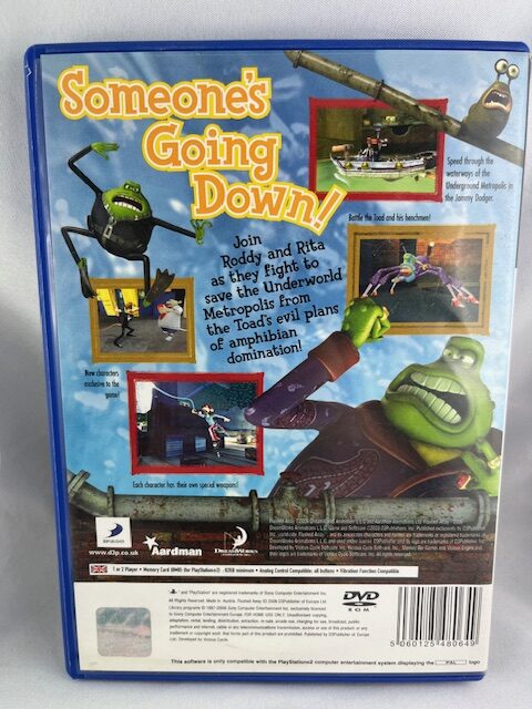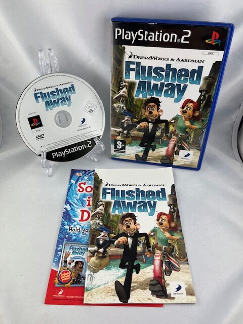 A Flushed Away a népszerű animációs film videojáték-adaptációja PlayStation 2-re. A játékban Roddy és Rita kalandjait követhetjük nyomon a londoni csatornarendszer színes és veszélyekkel teli világában. A pályák változatosak, tele vannak ügyességi feladatokkal, ellenfelekkel és gyűjthető elemekkel. Könnyed hangvételének és rajzfilmes stílusának köszönhetően ideális választás fiatalabb játékosoknak és családi játékhoz, de gyűjtők számára is értékes darab a PS2 korszakból.