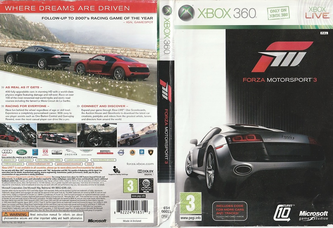 Forza Motorsport 3 xbox 360 BORÍTÓ (nem játék) In Stock