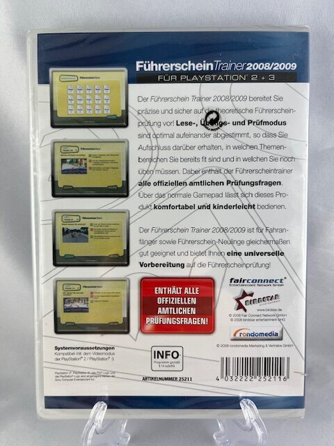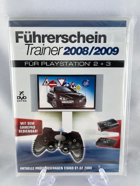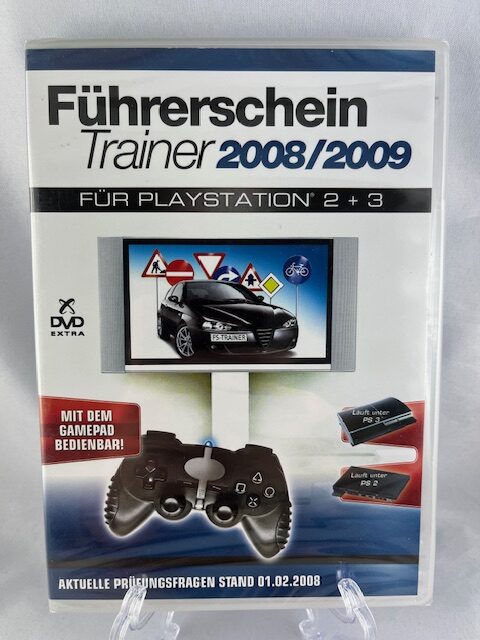 A Führerschein Trainer 2008/2009 egy különleges, oktatási célú szoftver PlayStation 2 és PlayStation 3 konzolokra. Ez a kiadás nem klasszikus értelemben vett videojáték, hanem egy német elméleti jogosítványvizsga-felkészítő program, amelyet kifejezetten arra terveztek, hogy a felhasználó a konzolján, gamepaddel gyakorolhassa a közlekedési szabályokat és a vizsgakérdéseket. A borító és a hátoldal alapján a program mindkét konzolon fut, és a kezelését direkt úgy alakították ki, hogy kontrollerral is egyszerűen használható legyen.