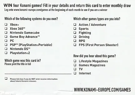 Eredeti Konami kiegészítő lap Xbox 360 konzol játékhoz. Ritka kiadás gyűjtőknek és rajongóknak. A termék nem tartalmaz játékot.