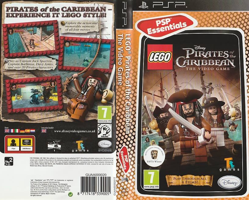 A PSP LEGO Pirates of the Caribbean The Video Game borító az eredeti játékhoz tartozó hivatalos kiadás.