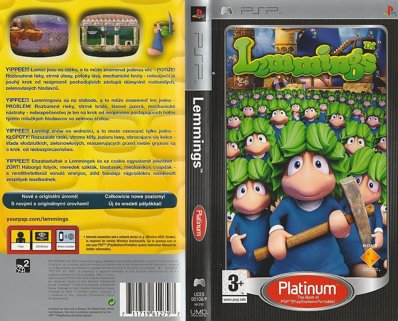 A PSP Lemmings borító az eredeti játékhoz tartozó hivatalos kiadás.