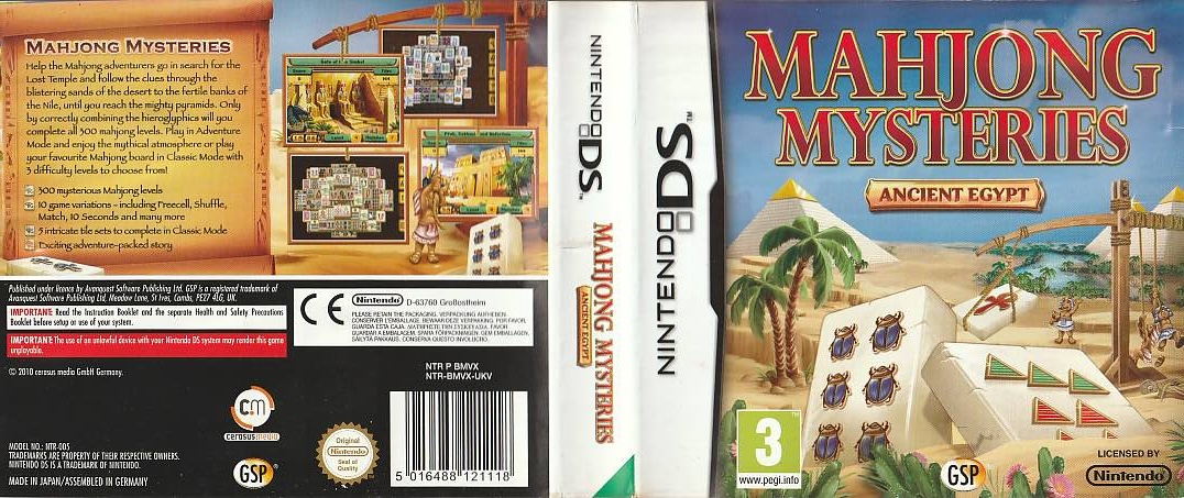 A Nintendo DS Mahjong Mysteries Ancient Egypt borító az eredeti játékhoz tartozó hivatalos kiadás.
