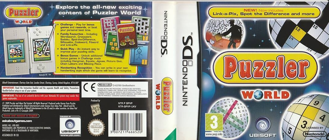 A Nintendo DS Puzzler World borító az eredeti játékhoz tartozó hivatalos kiadás.