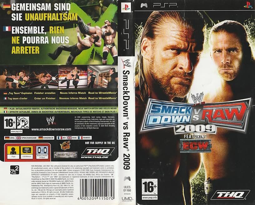 A PSP SmackDown vs. RAW 2009 borító az eredeti játékhoz tartozó hivatalos kiadás.
