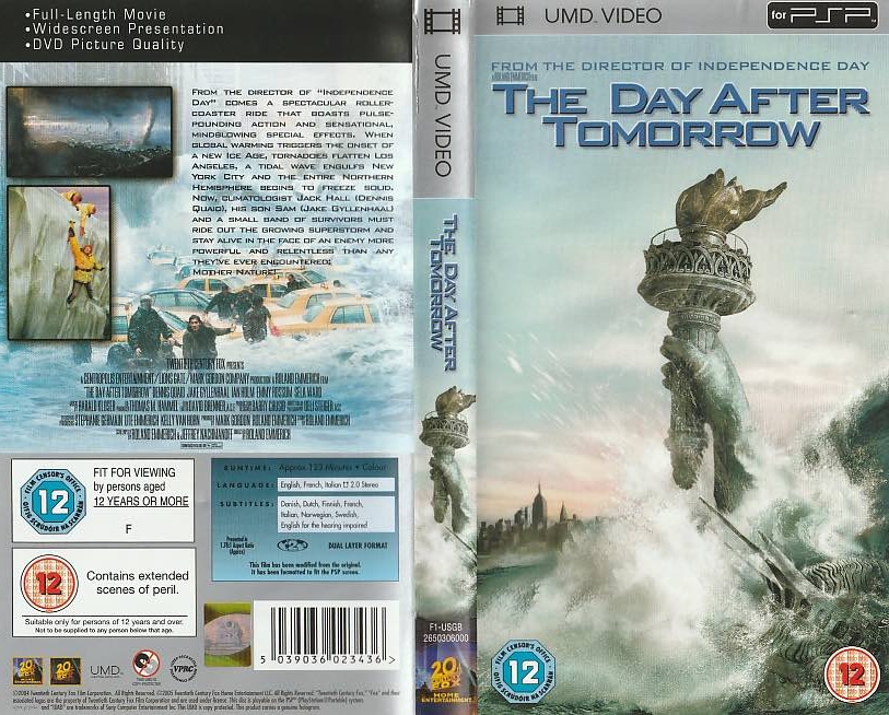 A PSP The Day After Tomorrow borító az eredeti játékhoz tartozó hivatalos kiadás.