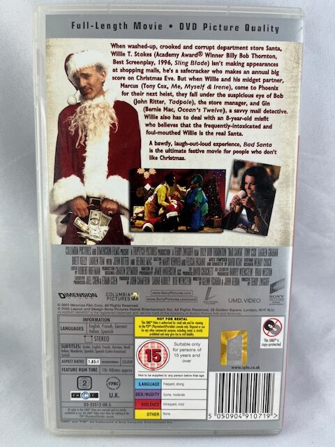Bad Santa botrányosan humoros vígjáték PSP UMD formátumban. Használt, eredeti tokos PSP Video kiadás. Nem játék.